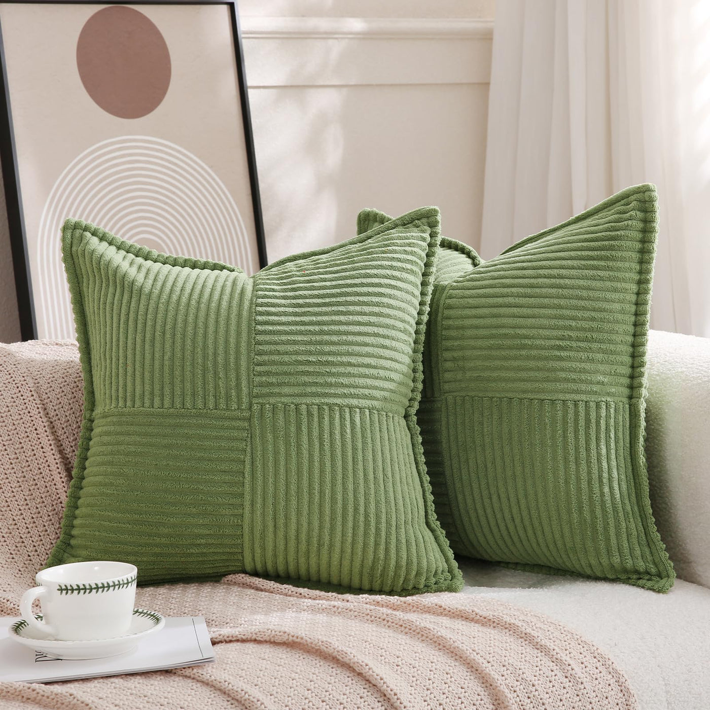 Puncuntex Corduroy Throw Pillow Covers Set Of 2 Boho Decorative Sage Green 16 16 Inch,Super Soft Pillowcase Cozy Striped Textur