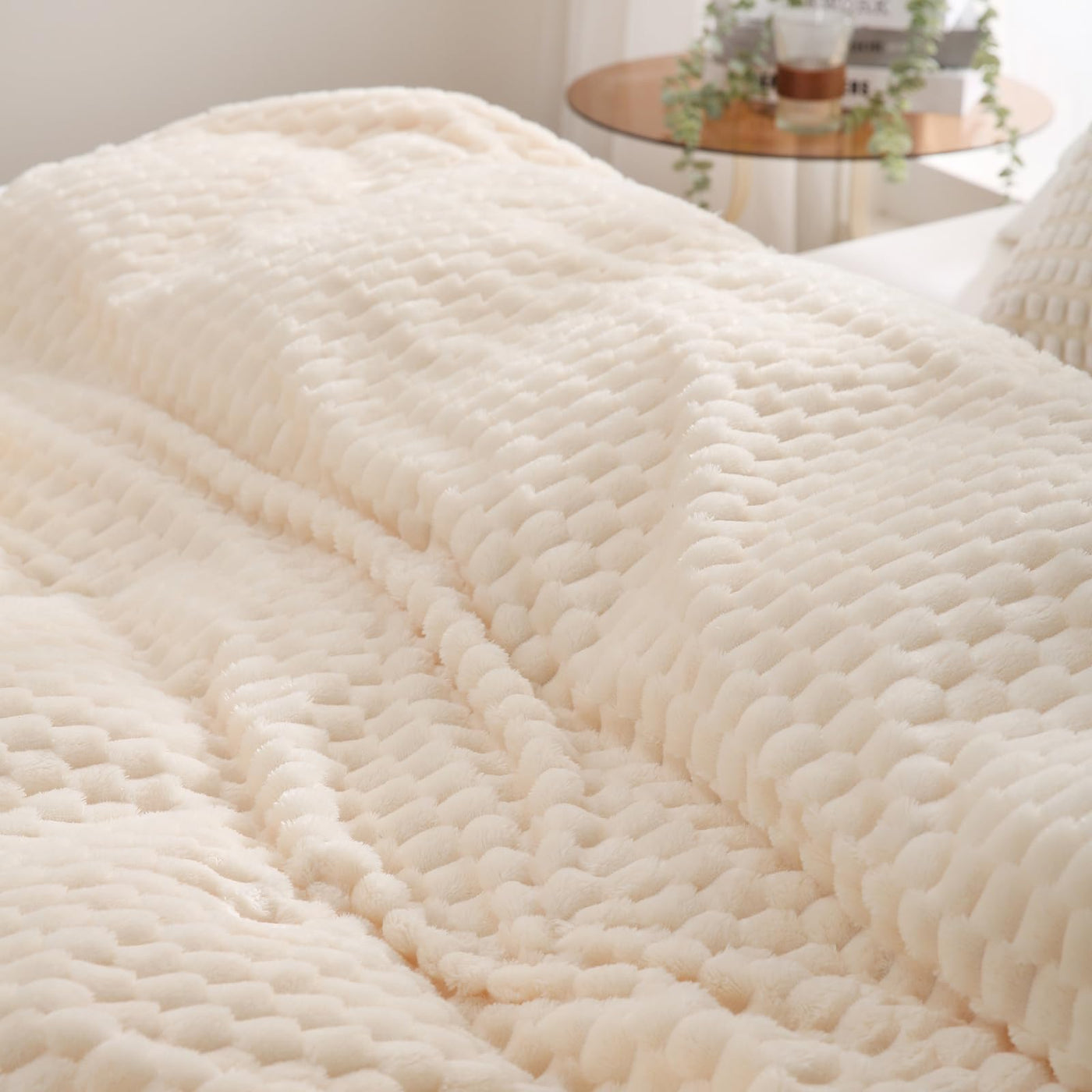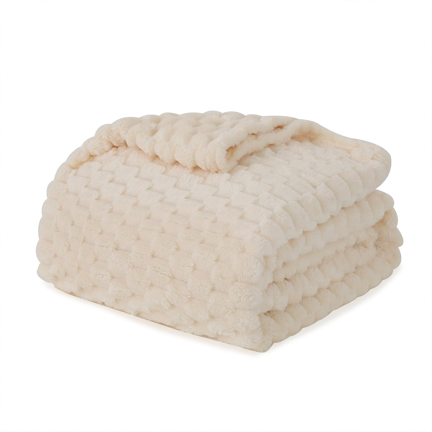 Puncuntex Cream White Throw Blanket 90'' 90'' Inches Fuzzy 3D Jacquard Decorative Flannel Fleece Super Soft Plush Cozy Blanket
