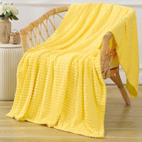 Puncuntex Yellow Throw Blanket 50'' 60'',Super Soft Flannel Fleece Plush Cozy Blanket With 3D Jacquard Square Grid Design Luxur