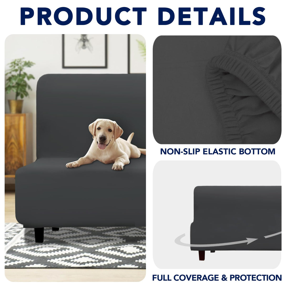 Our waterproof sofa slipcovers are meticulously engineered so that they stay in place! All our slipcovers feature a thick elastic hem that wraps at the bottom of the sofa furniture to ensure they don’t fall off.