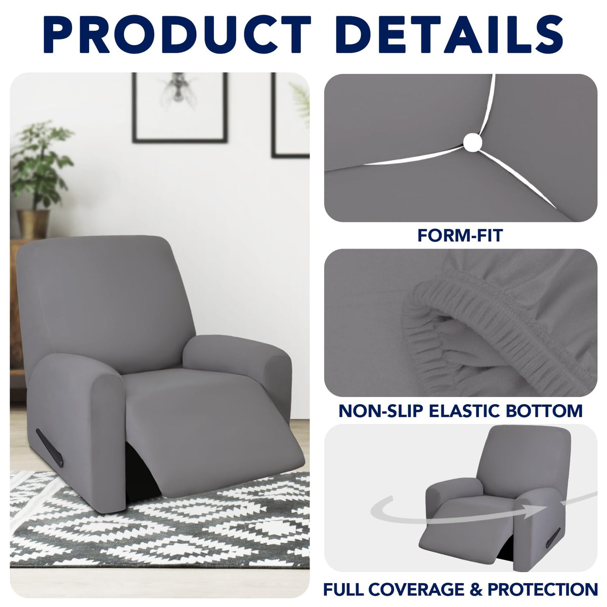 Purefit 100% Dual Waterproof Recliner Cover, Waterproof Couch Cover For Recliner - Stretch Non Slip Fleece Sofa Covers Washable, Leakproof Furniture Protector For Kids, Pets (Recliner, Light Gray)