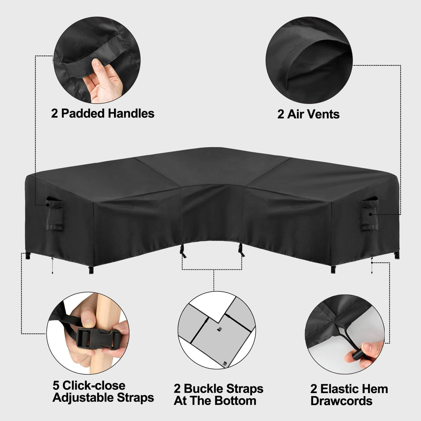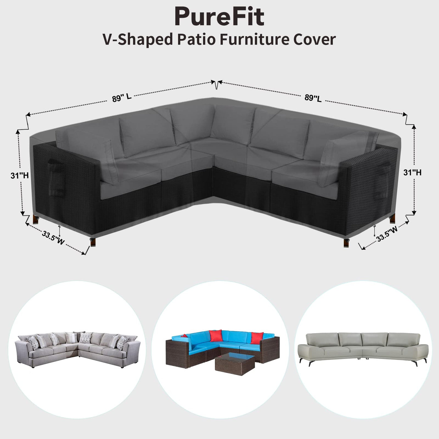 Purefit Outdoor Sectional Sofa Cover Waterproof V Shaped Patio Furniture Covers For Deck, Lawn And Backyard, 89”X89”, Black