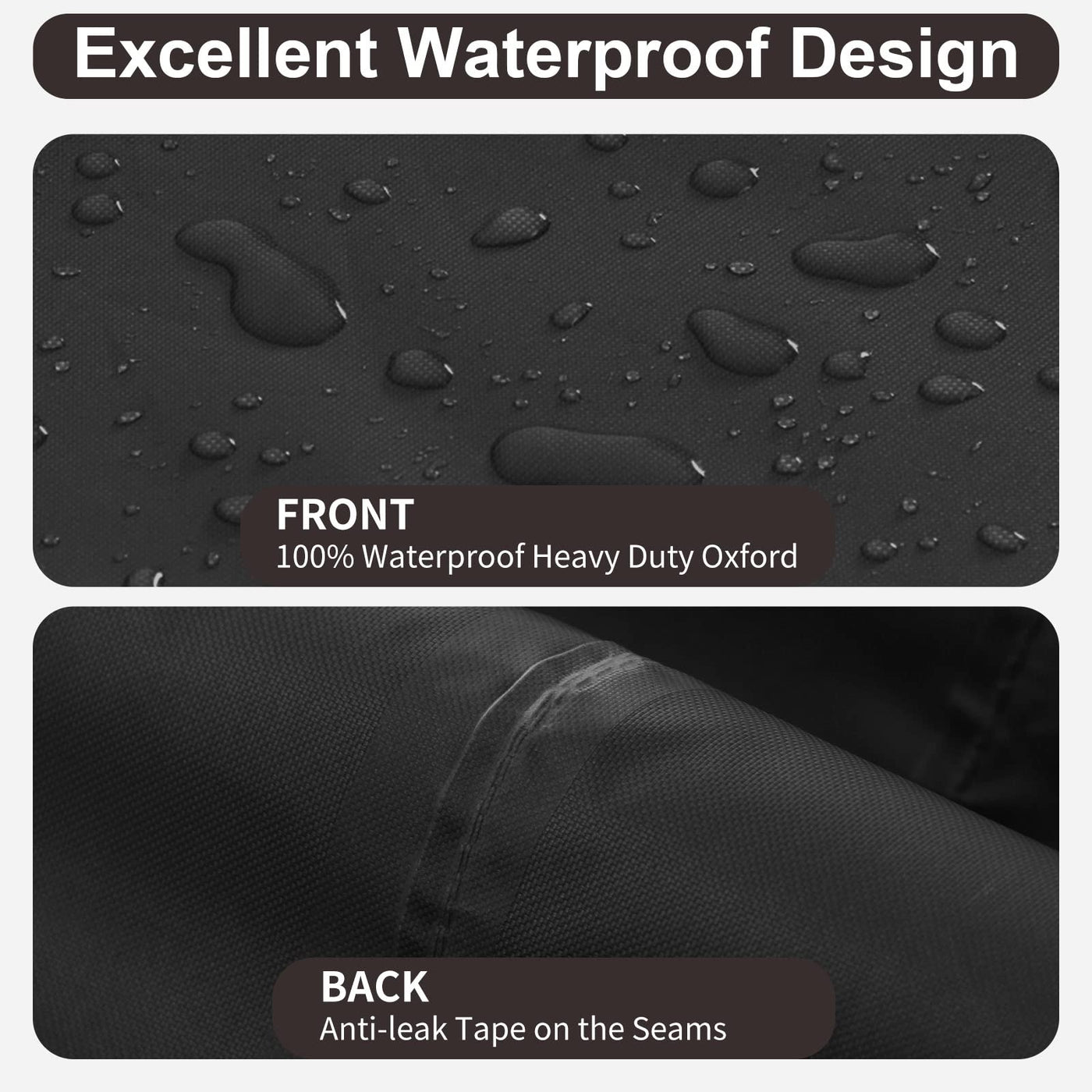Q: Is the Easy-Going patio furniture cover waterproof?A: Yes, the Easy-Going patio furniture cover is made from 600D heavy-duty oxford fabric with a PVC coating, ensuring it is 100% waterproof. It is designed to protect your furniture from rain, snow, and other moisture.