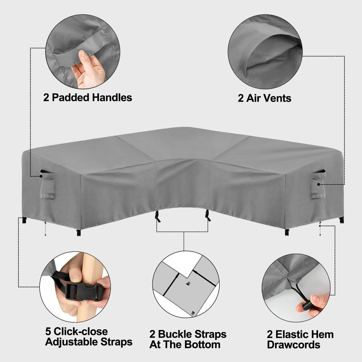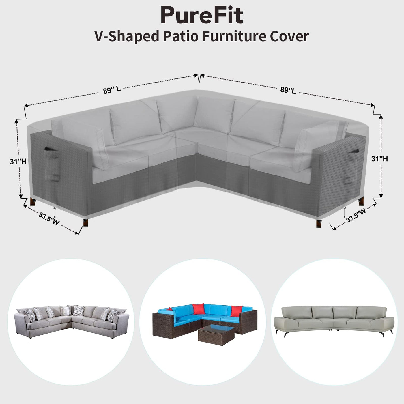 Purefit Outdoor Sectional Sofa Cover Waterproof V Shaped Patio Furniture Covers For Deck, Lawn And Backyard, 89”X89”, Gray
