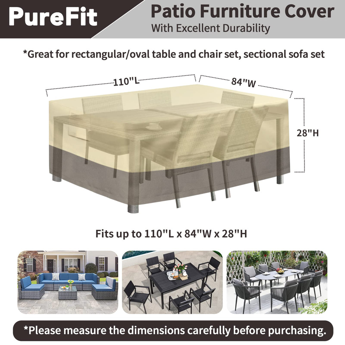 Purefit Patio Furniture Covers Outdoor Table Furniture Cover Waterproof Canvas Rectangle 650D Patio Covers For Outdoor Furniture, Lawn, Deck, Backyard, Anti-Fade & Tear Resistant, 110'L X 84'W X 28'H