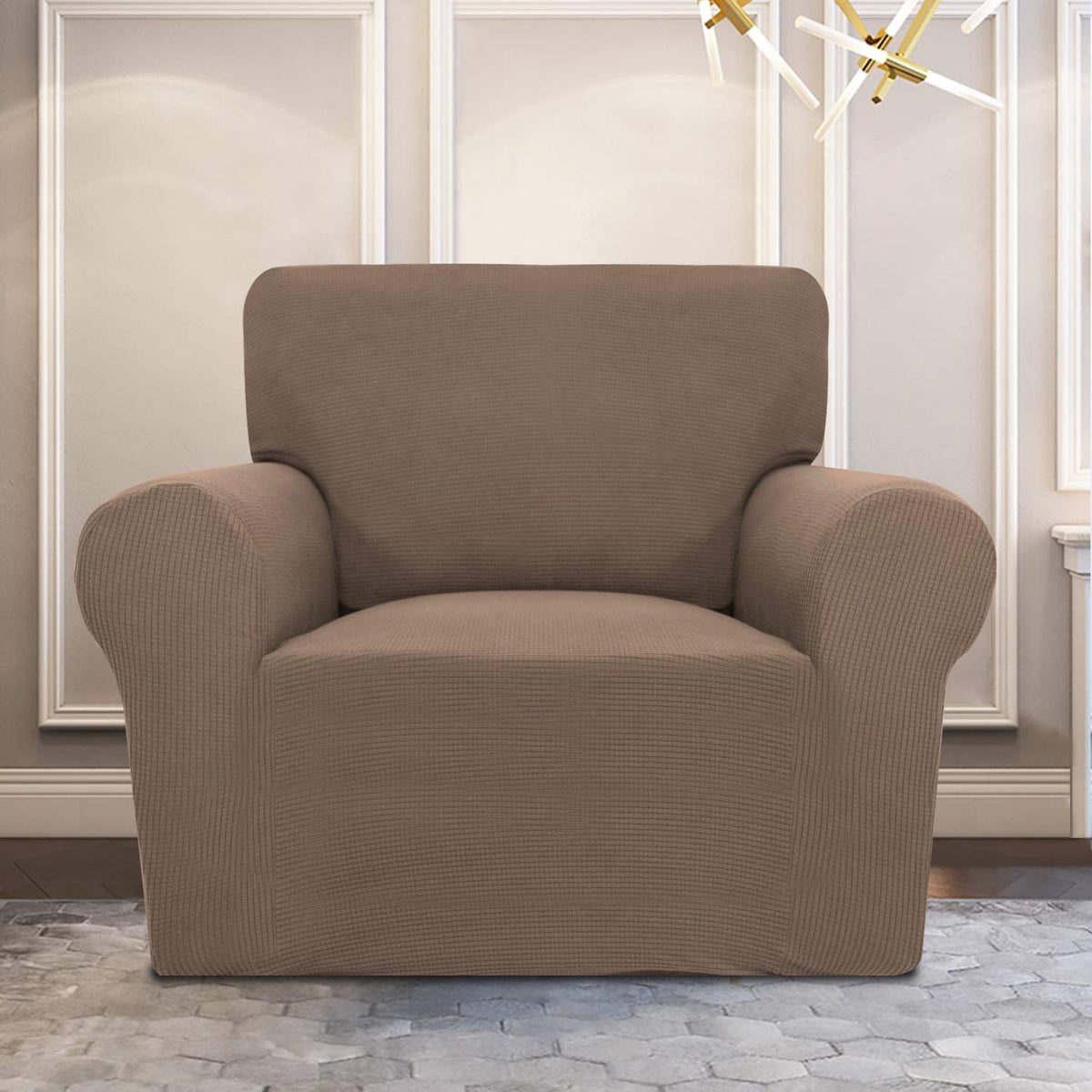 Purefit Stretch Chair Sofa Slipcover – Spandex Jacquard Non Slip Soft Couch Sofa Cover, Washable Furniture Protector With Non Skid Foam And Elastic Bottom For Kids (Chair, Camel)