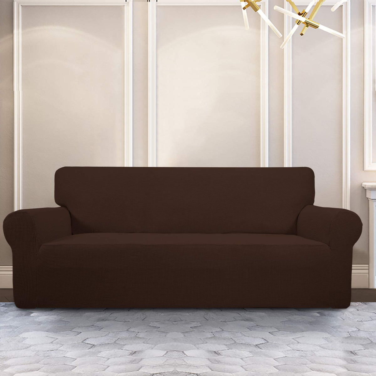 Purefit Stretch Sofa Slipcover – Spandex Jacquard Non Slip Soft Couch Sofa Cover, Washable Furniture Protector With Non Skid Foam And Elastic Bottom For Kids (Sofa, Coffee)