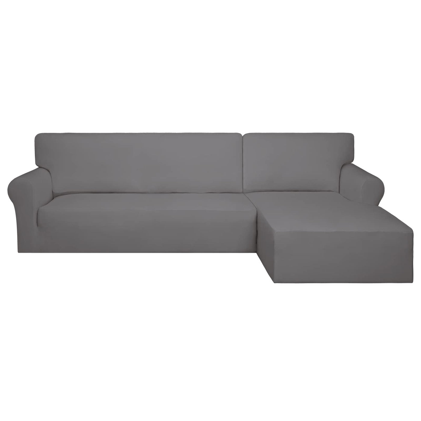 Purefit Super Stretch Sectional Couch Covers - 2 Pcs Spandex Non Slip Sofa Covers With Elastic Bottom For L Shape Sectional Sofa Couch, Great For Kids & Pets (3 Seat Sofa + 2 Seat Chaise, Light Gray)