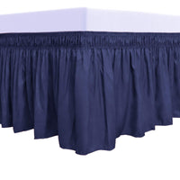 Purefit Wrap Around Ruffled Bed Skirt With Adjustable Elastic Belt - 18 Inch Drop Easy To Put On, Wrinkle Free Bedskirt Dust Ruffles, Bed Frame Cover For Queen, King And C-King Size Beds, Navy