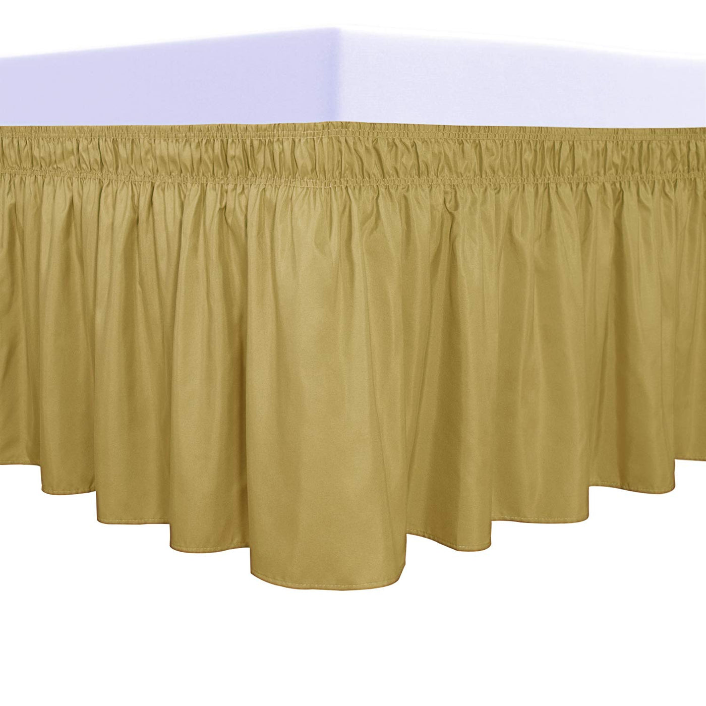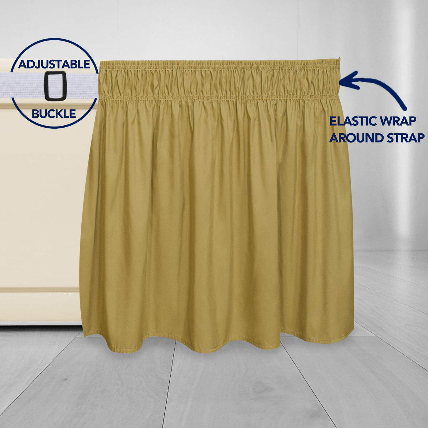 Purefit Wrap Around Ruffled Bed Skirt With Adjustable Elastic Belt - 18 Inch Drop Easy To Put On, Wrinkle Free Bedskirt Dust Ruffles, Bed Frame Cover For Twin,Twin Xl And Full Size Beds, Gold