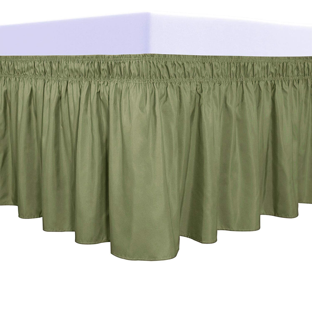 Purefit Wrap Around Ruffled Bed Skirt With Adjustable Elastic Belt - 18 Inch Drop Easy To Put On, Wrinkle Free Bedskirt Dust Ruffles, Bed Frame Cover For Twin,Twin Xl And Full Size Beds, Light Green