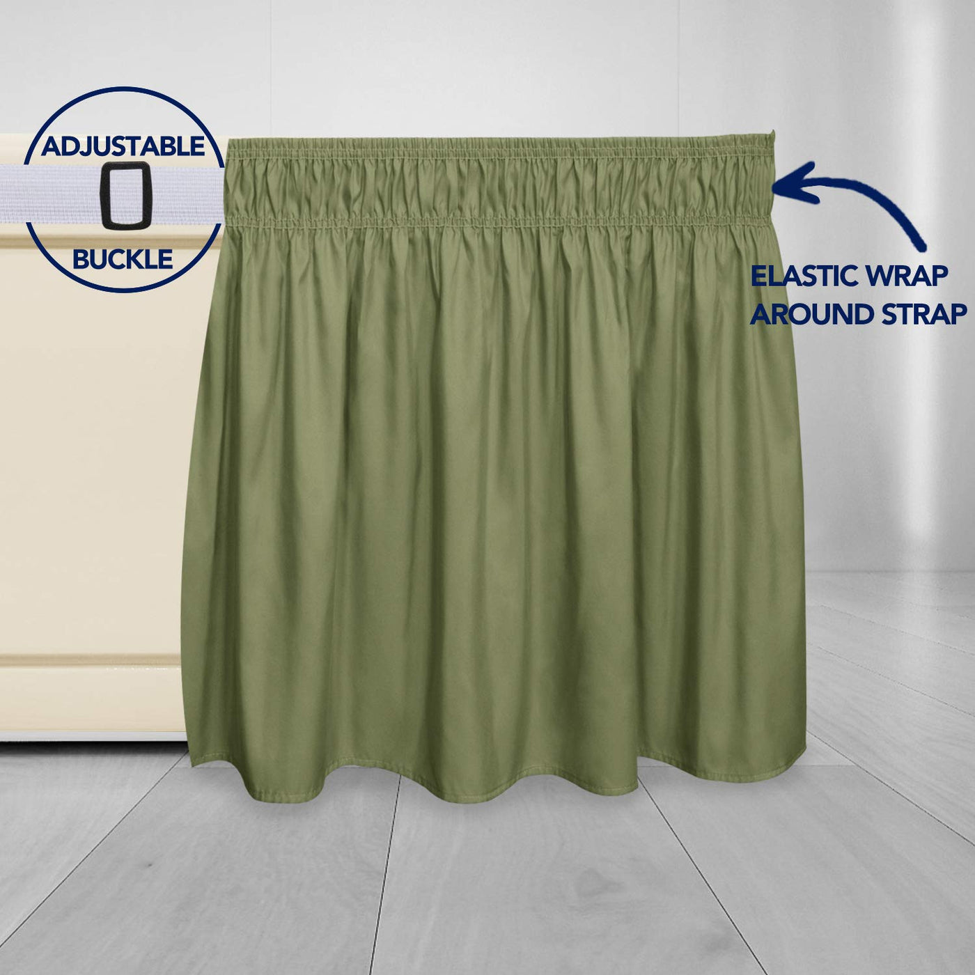 NON-SLIP BED SKIRT THAT ACTUALLY STAYS IN PLACE Our bed skirt completely covers 3 sides of the bed, the adjustable elastic wraps around the headboard side!