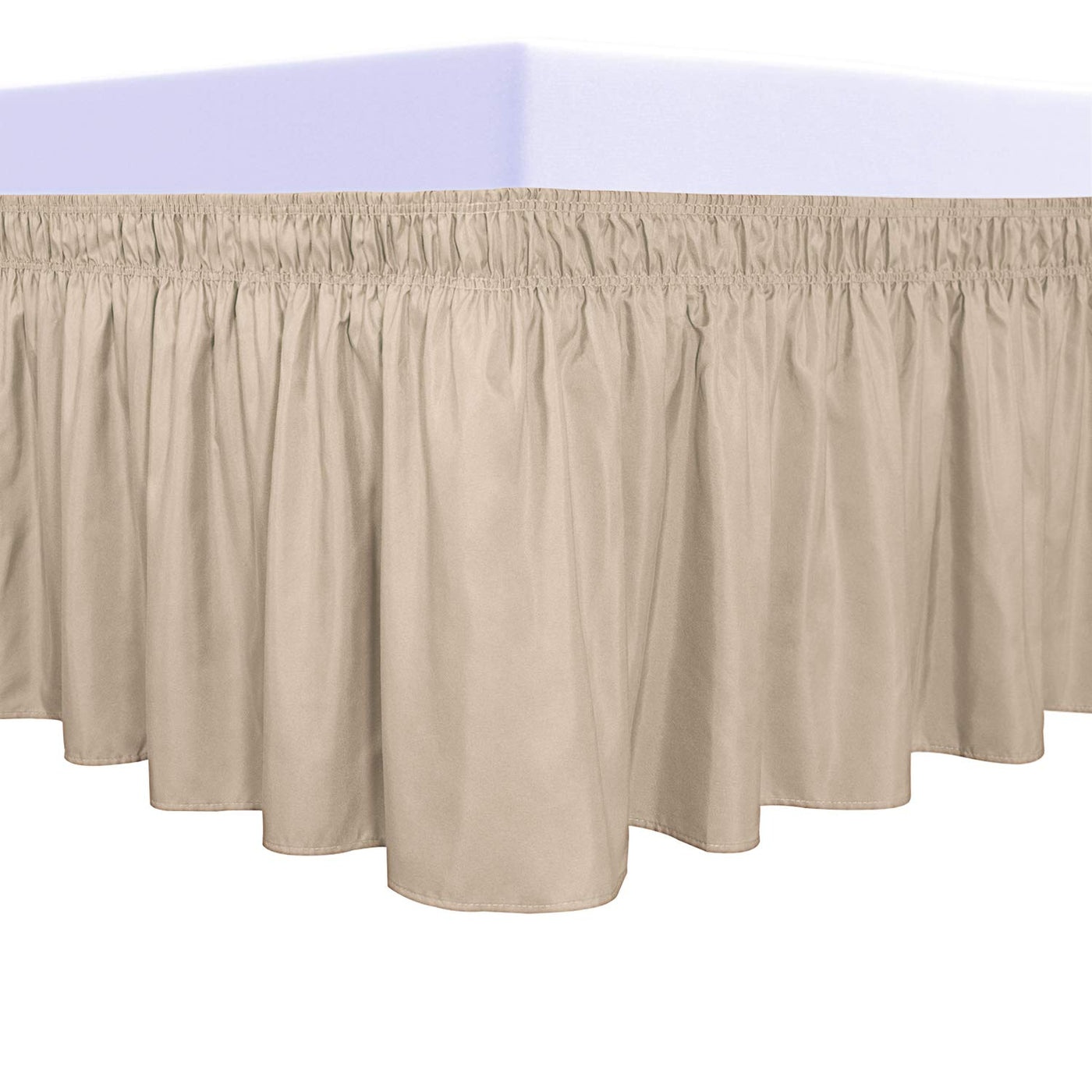 Purefit Wrap Around Ruffled Bed Skirt With Adjustable Elastic Belt - 22 Inch Drop Easy To Put On, Wrinkle Free Bedskirt Dust Ruffles, Bed Frame Cover For Queen, King And C-King Size Beds, Beige