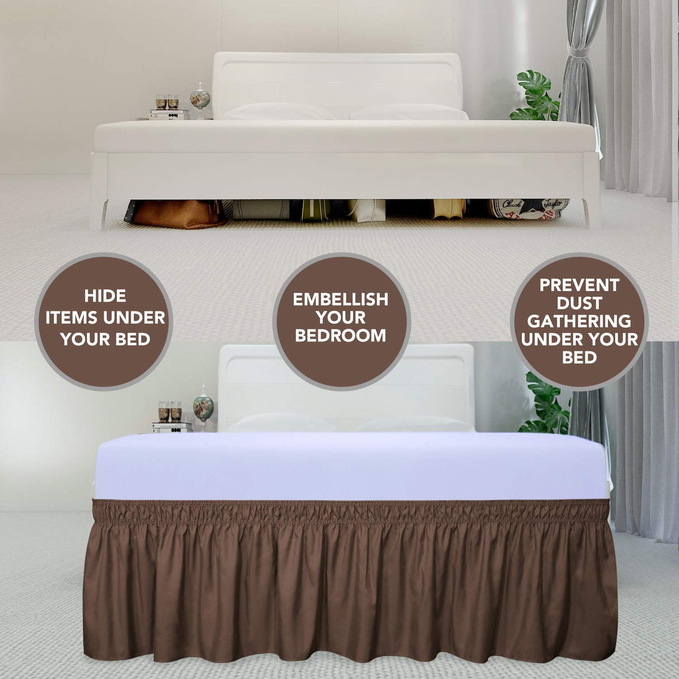 Purefit Wrap Around Ruffled Bed Skirt With Adjustable Elastic Belt - 22 Inch Drop Easy To Put On, Wrinkle Free Bedskirt Dust Ruffles, Bed Frame Cover For Queen, King And C-King Size Beds, Brown