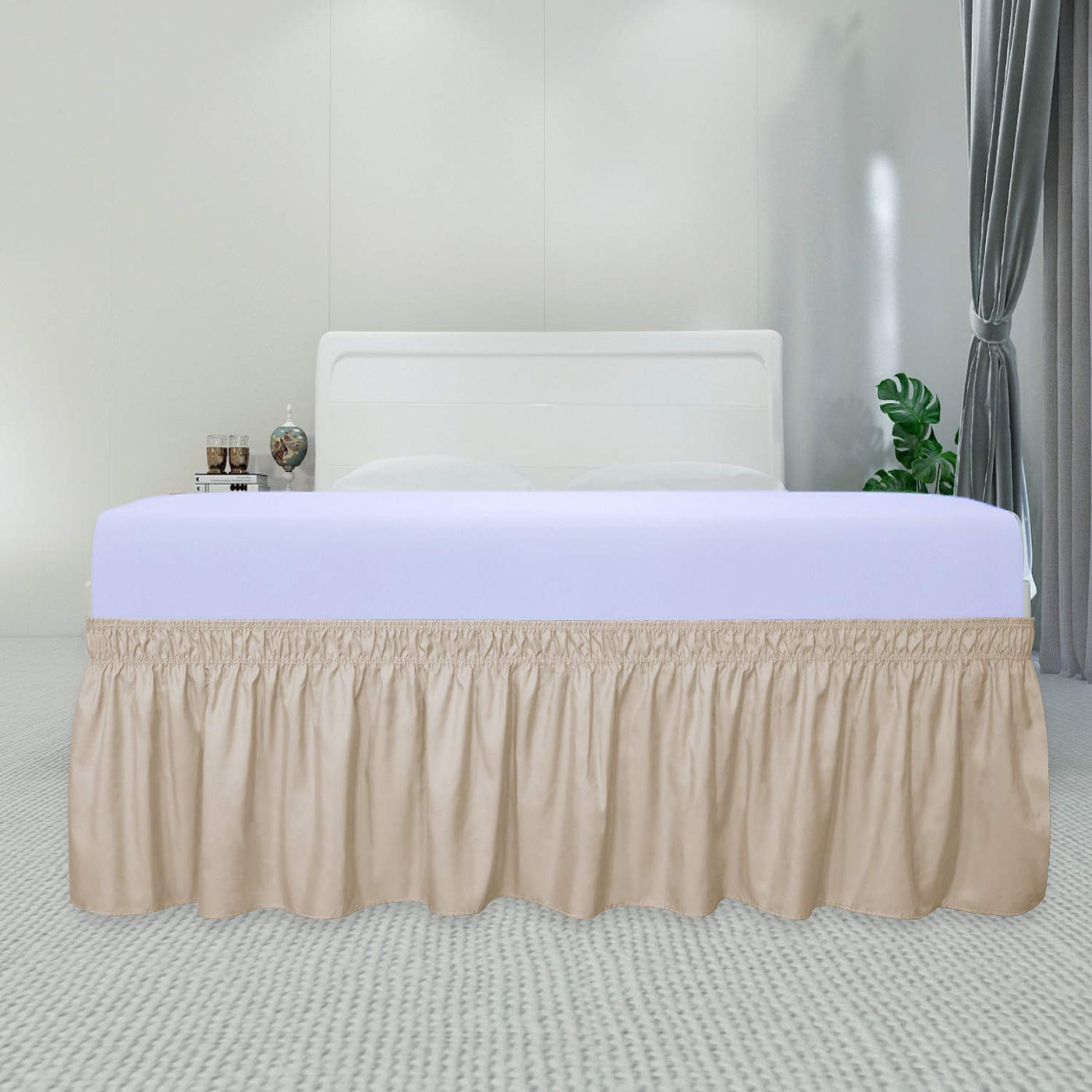Purefit Wrap Around Ruffled Bed Skirt With Adjustable Elastic Belt - 22 Inch Drop Easy To Put On, Wrinkle Free Bedskirt Dust Ruffles, Bed Frame Cover For Twin, Twin Xl And Full Size Beds, Beige