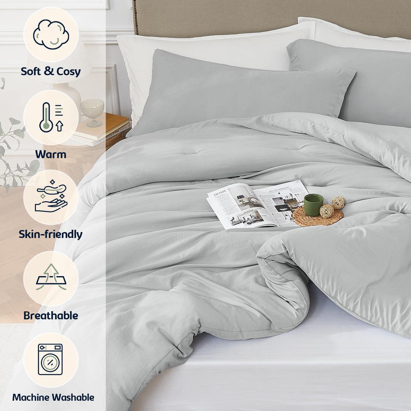 Quataly Twin Comforter Set Lightgrey,2Pcs Soft Lightweight Breathable Bedding Comforter Sets For All Season, Twin Size(68'' 90'