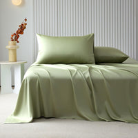 Queen Bed Sheets Set Sage Green - Lyocell Sheets Cooling Bedding Sheet & Pillowcase Sets Queen - 4 Piece Queen Sheet Set With 16