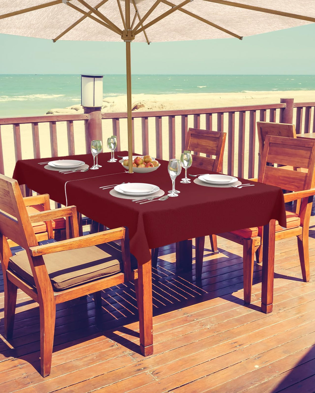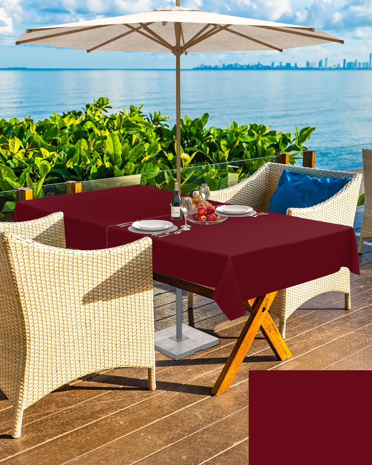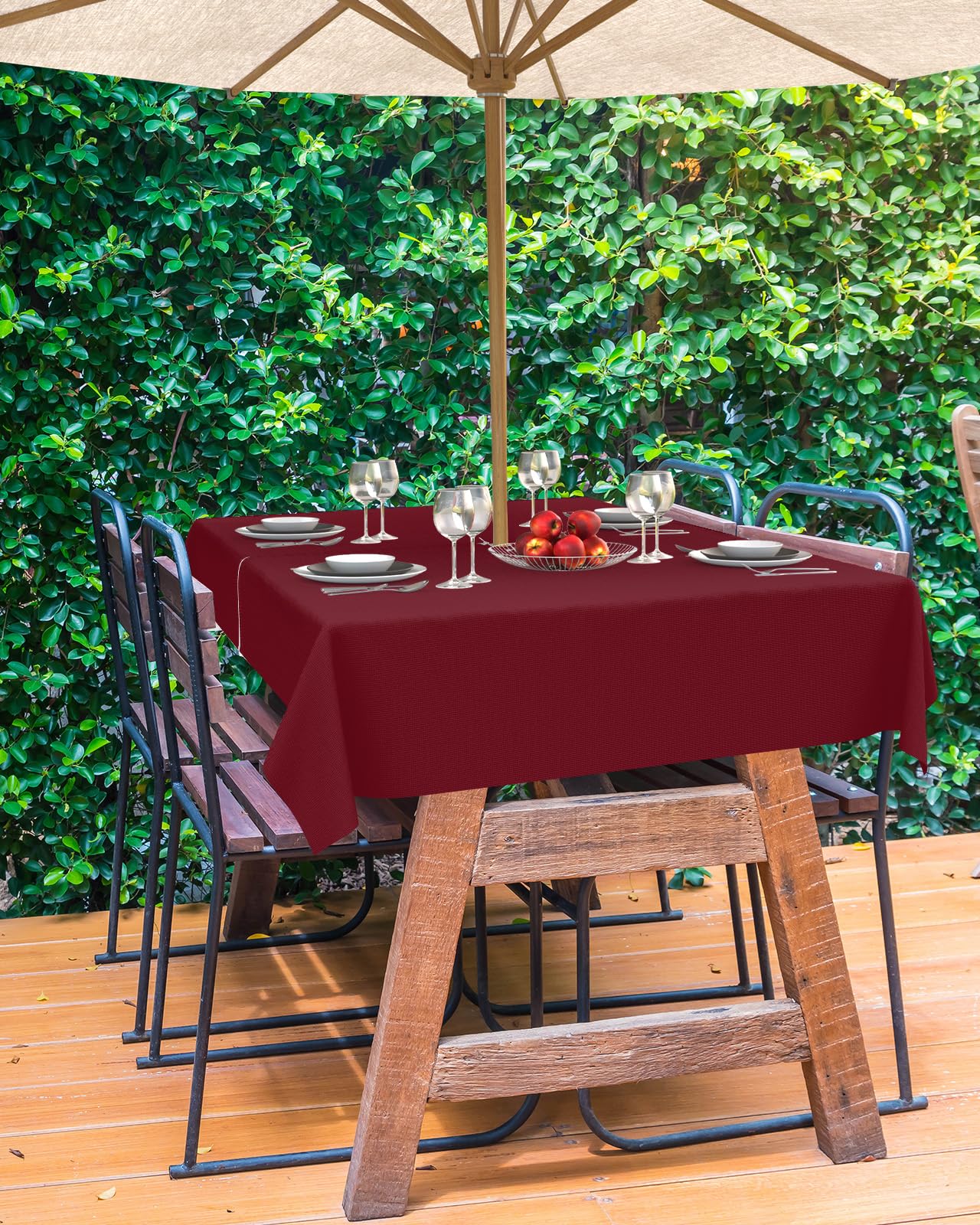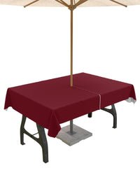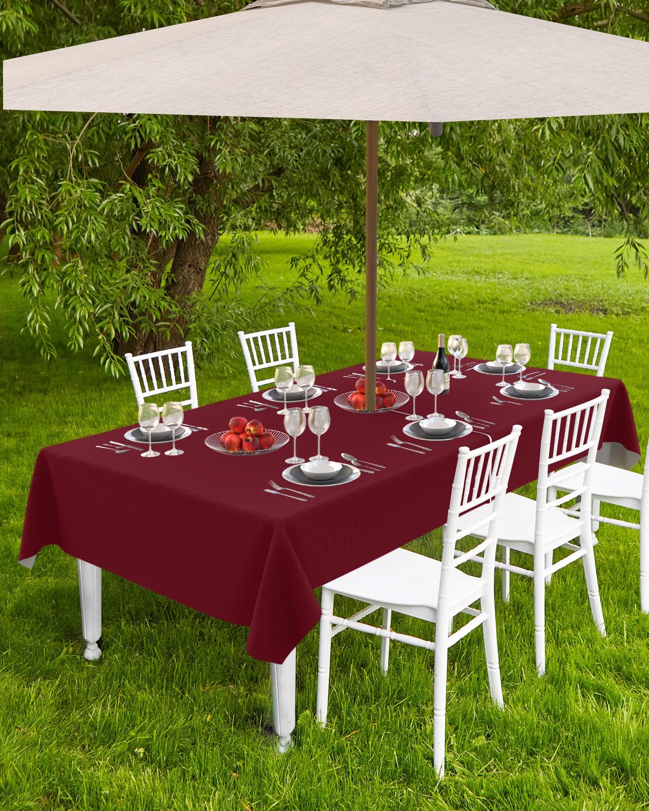 Queenker Wine Red Outdoor Tablecloth With Umbrella Hole And Zipper, Solid Color Table Cover For Rectangle Tables Waterproof Tabl
