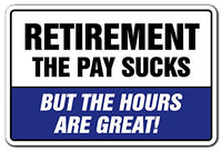 Retirement The Pay Sucks But The Hours Are Great! Aluminum Sign Retired | Indoor/Outdoor | 14' Tall