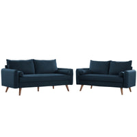 Transform your home or apartment into a vibrant and inviting living space with the Revive Sofa and Loveseat Set. This set features a comfortable yet sophisticated design, complete with matching bolster pillows. The soft fabric upholstery and clean lines of the sofa are complemented by the splayed wood legs, creating an approachable and stylish appeal. Conveniently delivered to your doorstep in a shipping box, the Revive set is easy to unpack and quickly becomes the most beloved lounge spot in your home. The sofa has a weight capacity of 1323 lbs, while the loveseat can support up to 880 lbs. The set includes one Revive Loveseat and one Revive Sofa.