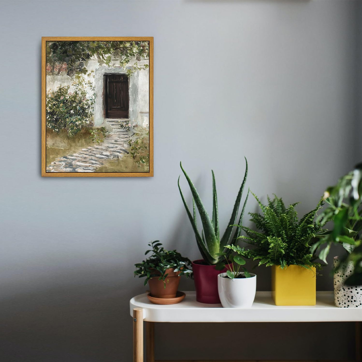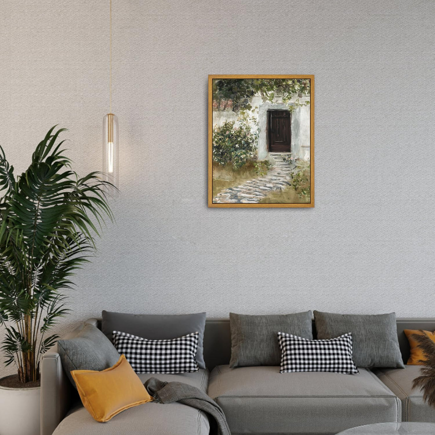 Roslynity Framed Canvas Wall Art Vintage Print Oil Paintings Spring Cottage Summer Country Landscape Retro Aesthetic Artwork For