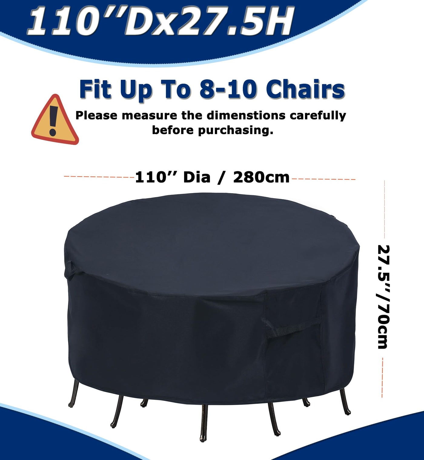 Round Patio Furniture Covers, 110'' Dia Outdoor Furniture Covers, Waterproof Outdoor Table Cover, Fire Pit Cover Outdoor Round T