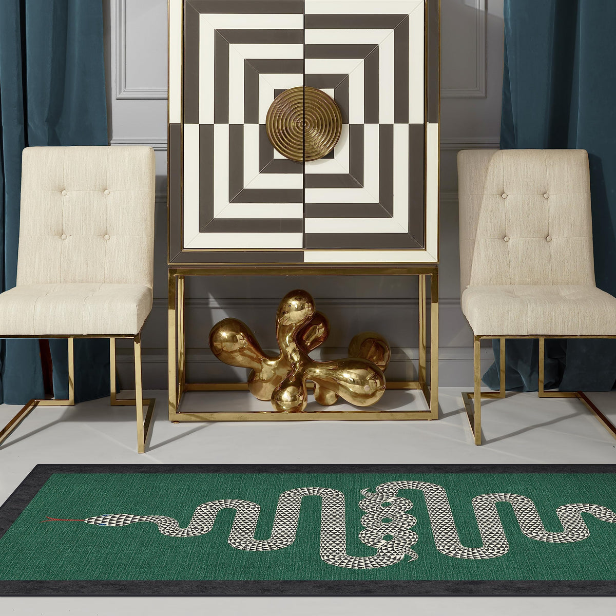 Ruggable X Jonathan Adler - Venom Emerald - Machine Washable Runner Rug - Pet & Child Friendly - Stain & Water Resistant - Non-S