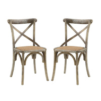 Indulge in nostalgic moments while enjoying a relaxed tea or satisfying breakfast. This chair effortlessly combines a rustic aesthetic with contemporary design, featuring an exposed wooden backrest and sleek tapered legs. Arriving fully assembled, it effortlessly enhances the charm of country cottages, rustic settings, or even urban dwellings seeking a tranquil escape. This set includes two Gear Dining Side Chairs.