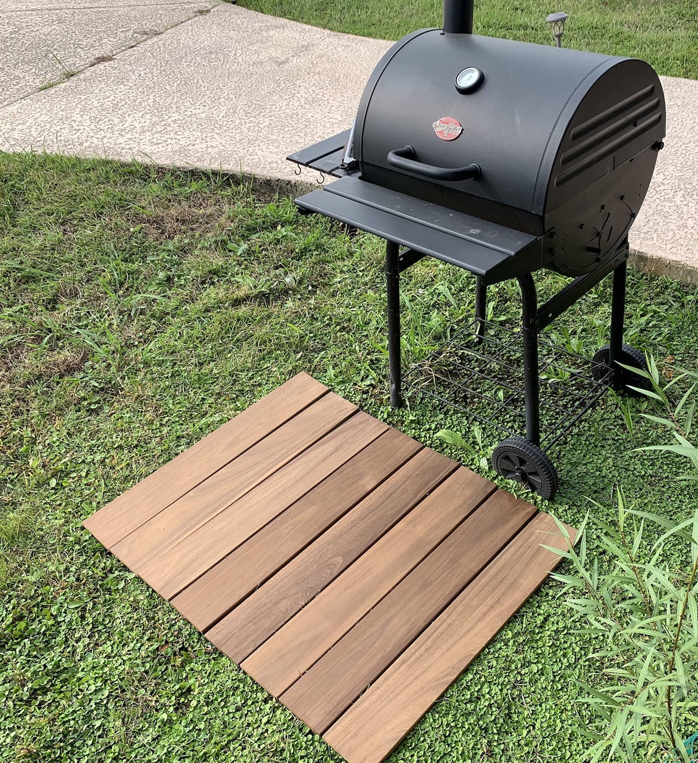 Good looking and practical, make covering the floor easy, indoors or out, with this unique and creative Rustic Dark Brown Roll Out Indoor Outdoor Wood Floor Mat. Use as a single floor mat or cover your space with multiples to make a deck-like wood rug. These cool plank mats can even be cut to size if you need to fit a particular space. Made with outdoor rated and environmentally safe thermo-treated hardwood that is water resistant and built to last, this mat is a great way change things up. The beauty is not only that they bring in a sense of authentic and earthy appeal to your space with their warm coloration, distressed and natural wood grains, but that they are they multi-faceted in their functionality, allowing you to creatively use them for a host of many options. Use as a temporary or permanent solution indoors or out - on your patio, balcony, in the garage or basement. These mats are great for camping or RVs. They make great mini-decks in the barbeque area or walk ways around the pool or garden. The possibilties are endless. 32' x 42' x 0.5'
