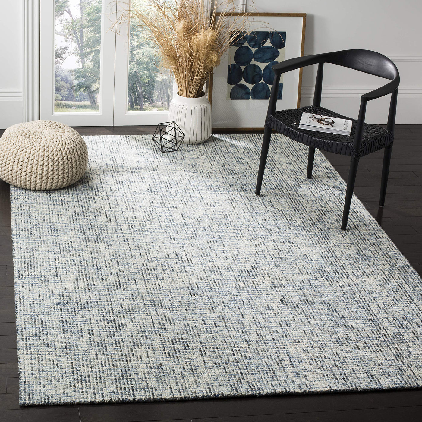 Q: What materials are used in the SAFAVIEH Abstract Collection Area Rug?A: The SAFAVIEH Abstract Collection Area Rug is made from plush premium natural wool, ensuring a soft and durable surface suitable for high traffic areas.
