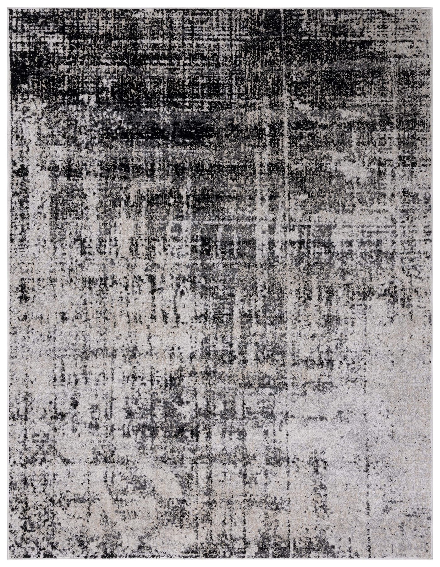 Q: What style does the SAFAVIEH Adirondack Area Rug feature?A: The rug features a modern abstract design in silver and black, which beautifully enhances any room decor, from contemporary to rustic lodge styles.