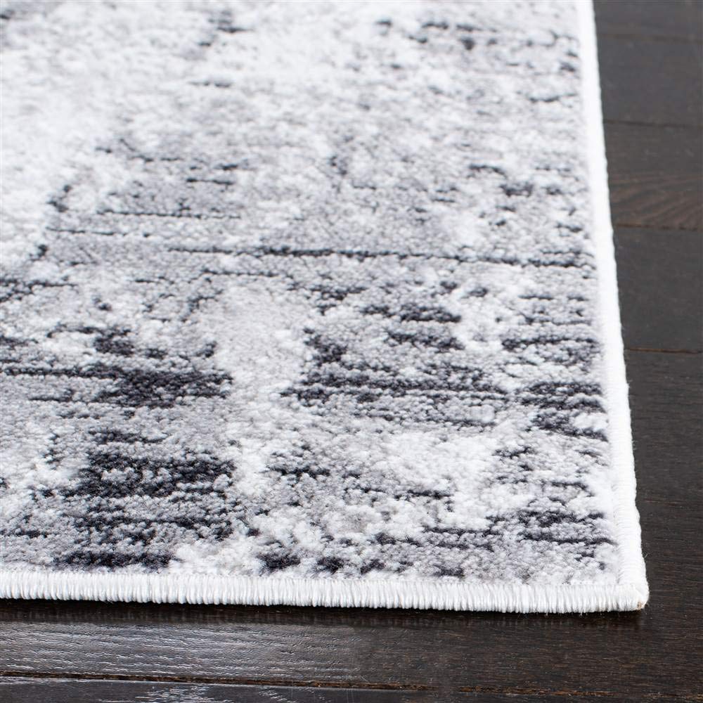 Q: What design style does the SAFAVIEH Amelia Collection Area Rug feature?A: The rug features a modern abstract design with trendy shades of grey and ivory, enhancing the aesthetic of any room, whether it be a living room, dining room, or home office.