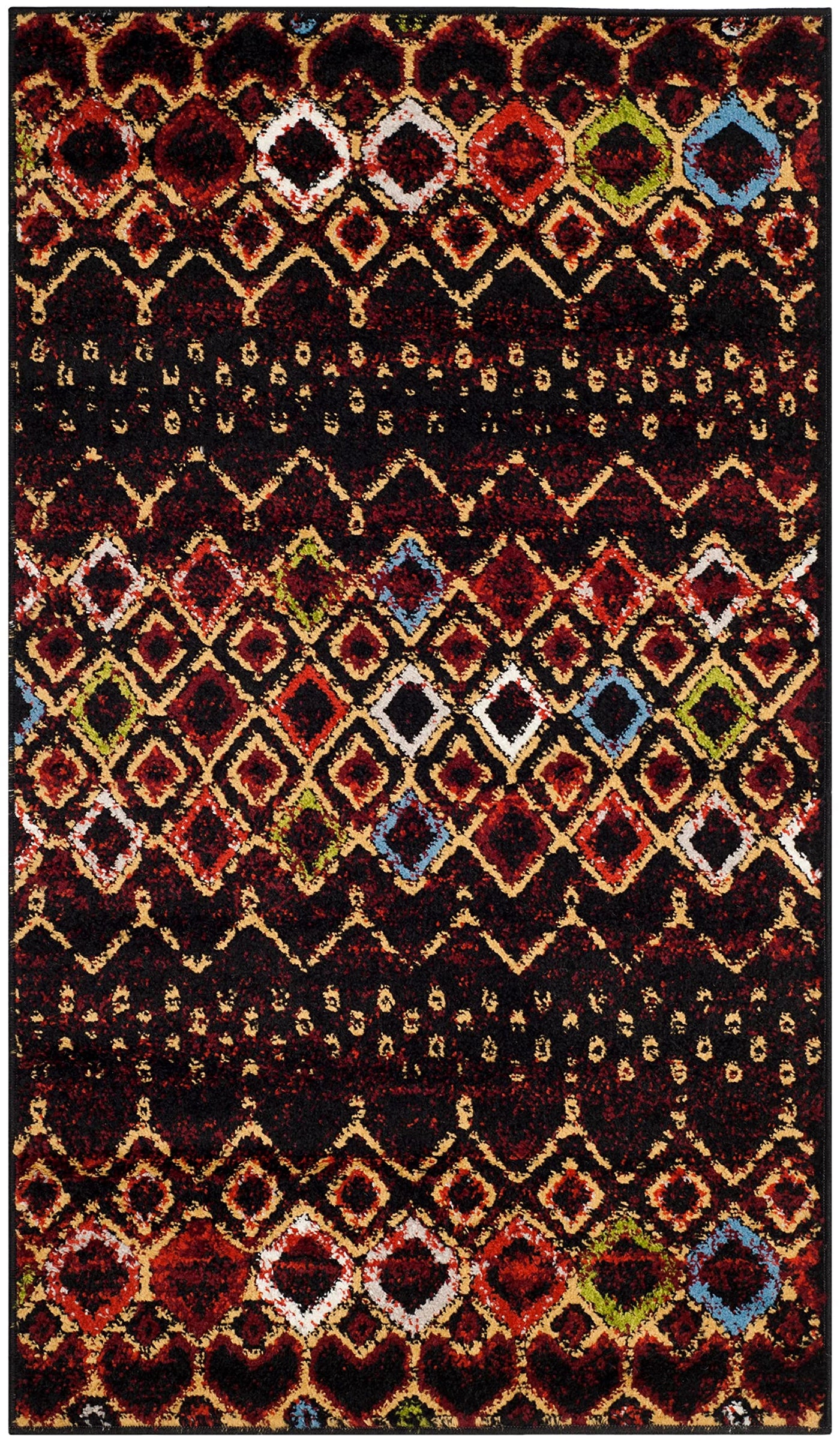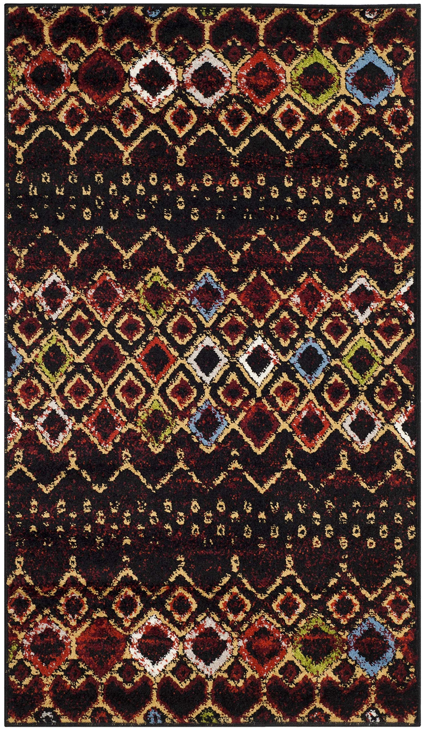 Safavieh Amsterdam Collection Accent Rug - 3' X 5', Black & Multi, Moroccan Boho Design, Non-Shedding & Easy Care, Ideal For Hig