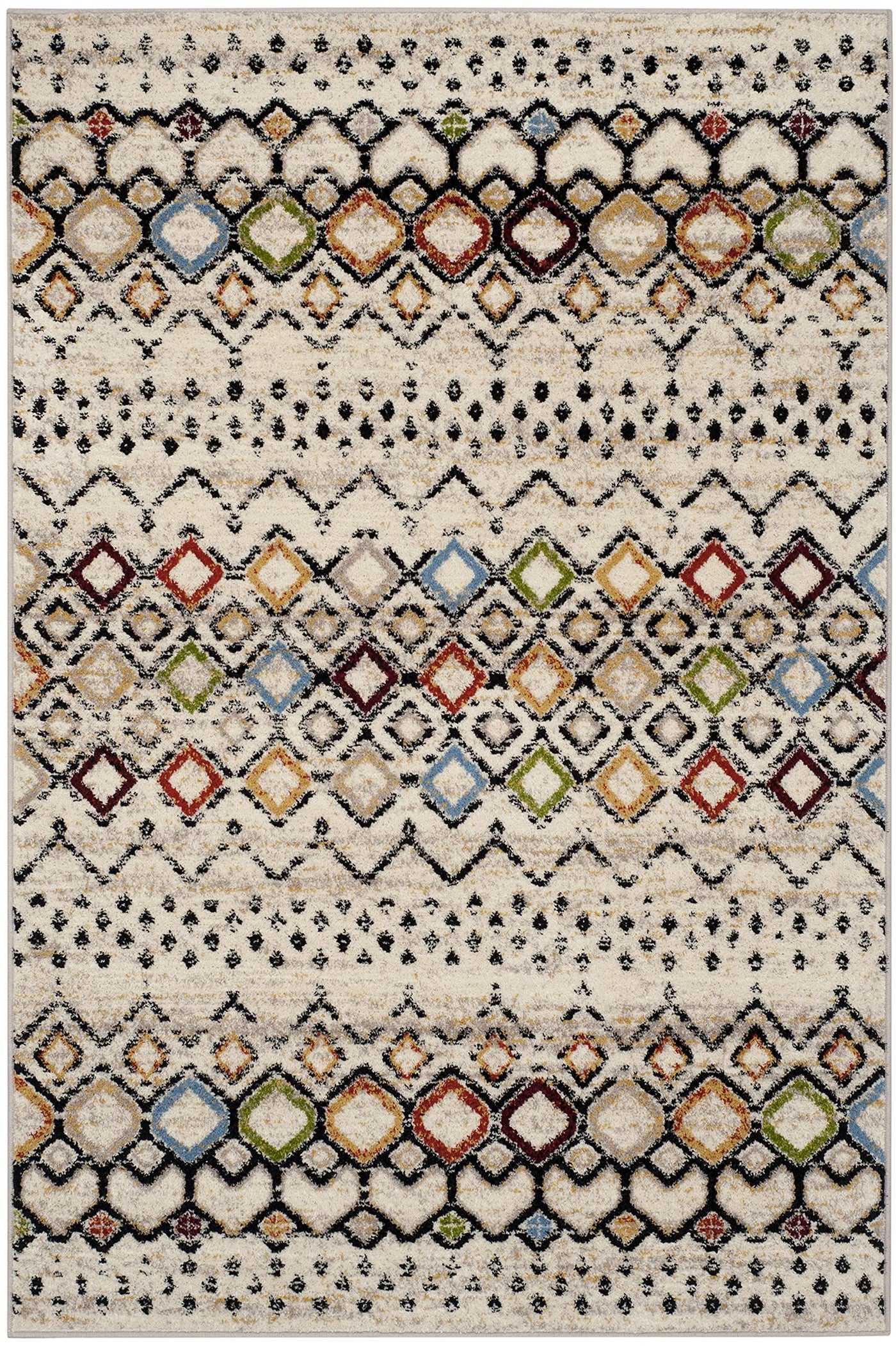 Safavieh Amsterdam Collection Accent Rug - 4' X 6', Ivory & Multi, Moroccan Boho Design, Non-Shedding & Easy Care, Ideal For Hig