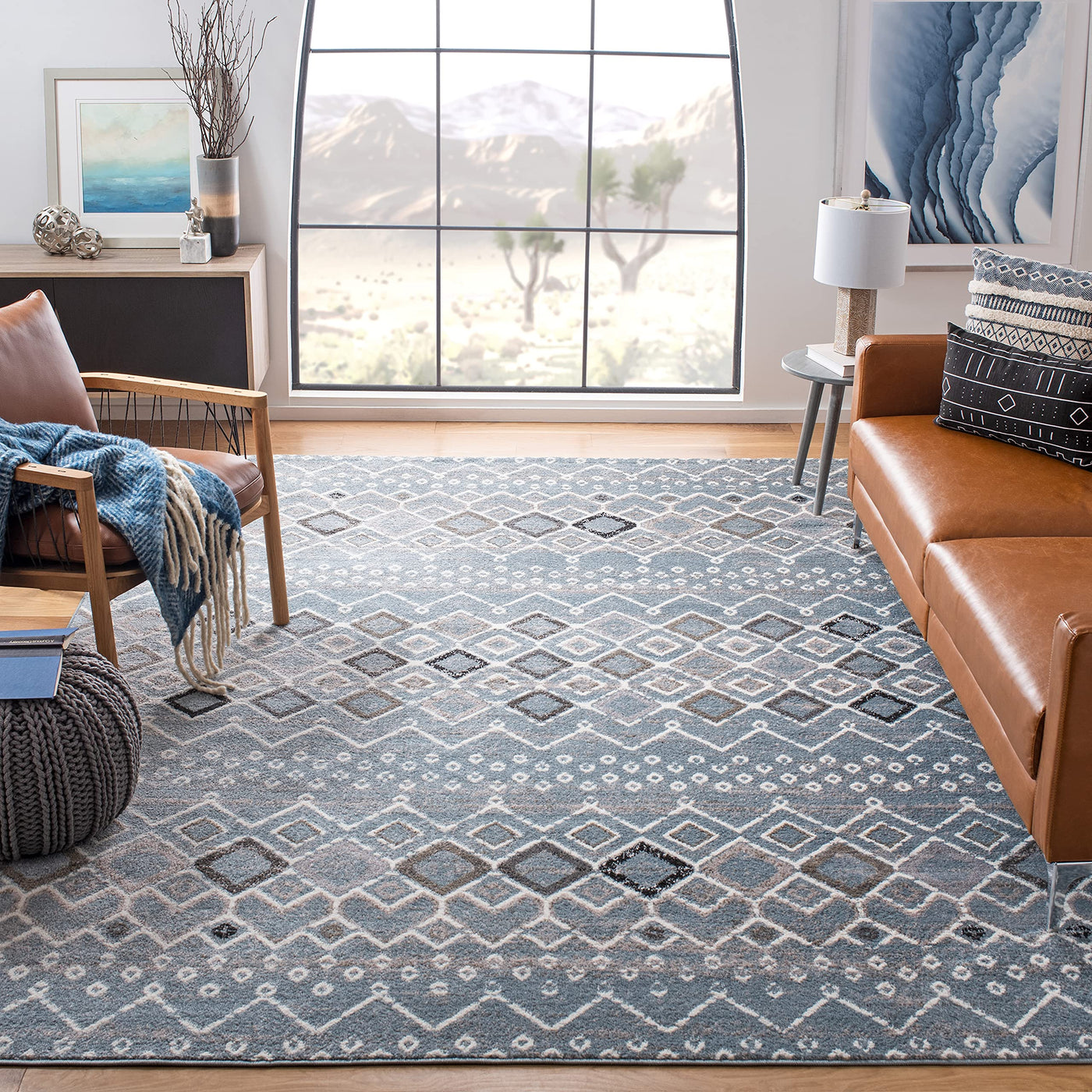 Safavieh Amsterdam Collection Area Rug - 10' X 14', Blue & Ivory, Moroccan Boho Design, Non-Shedding & Easy Care, Ideal For High