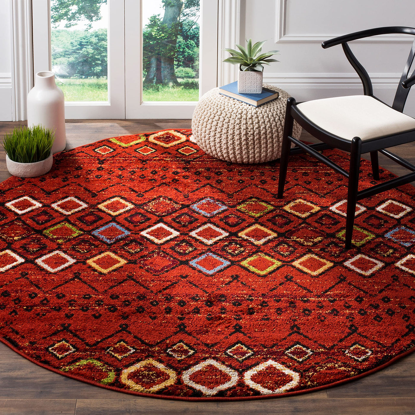 Safavieh Amsterdam Collection Area Rug - 11' Round, Terracotta & Multi, Moroccan Boho Design, Non-Shedding & Easy Care, Ideal Fo
