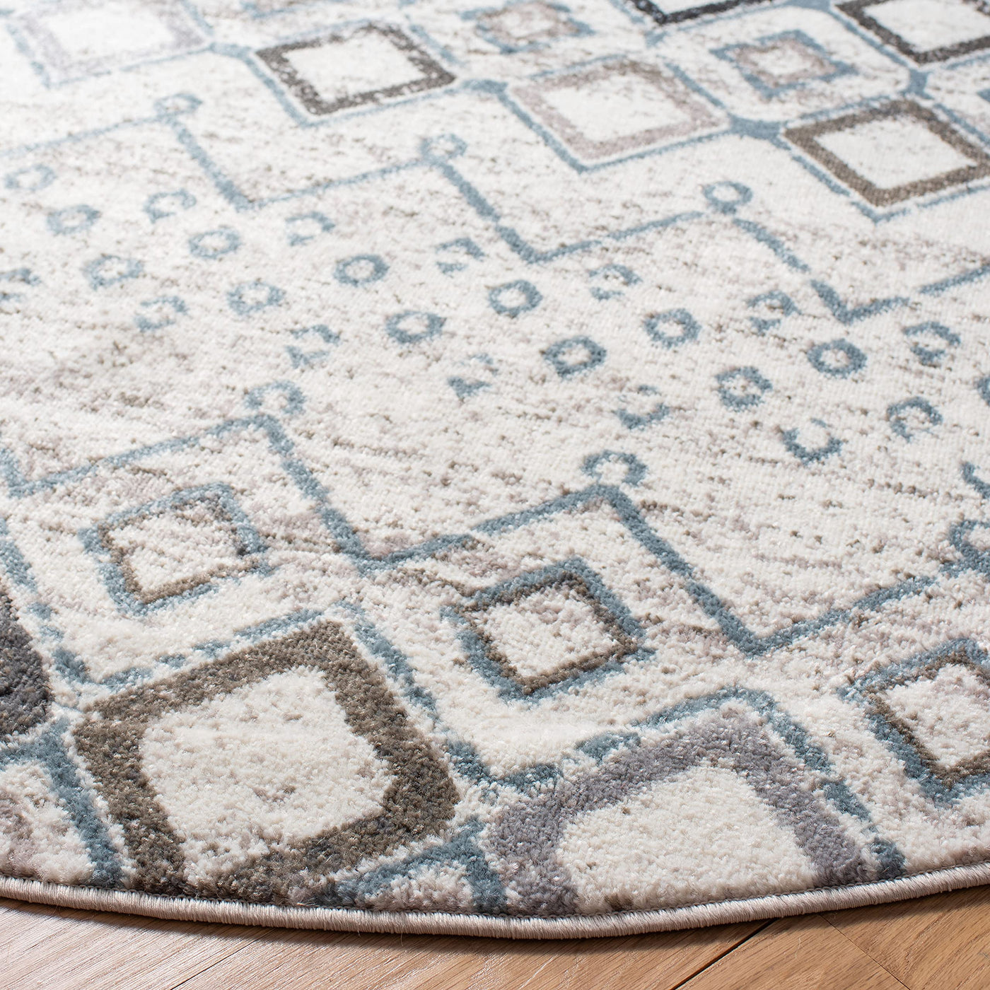 Safavieh Amsterdam Collection Area Rug - 5'1'' Round, Ivory & Grey, Moroccan Boho Design, Non-Shedding & Easy Care, Ideal For Hi