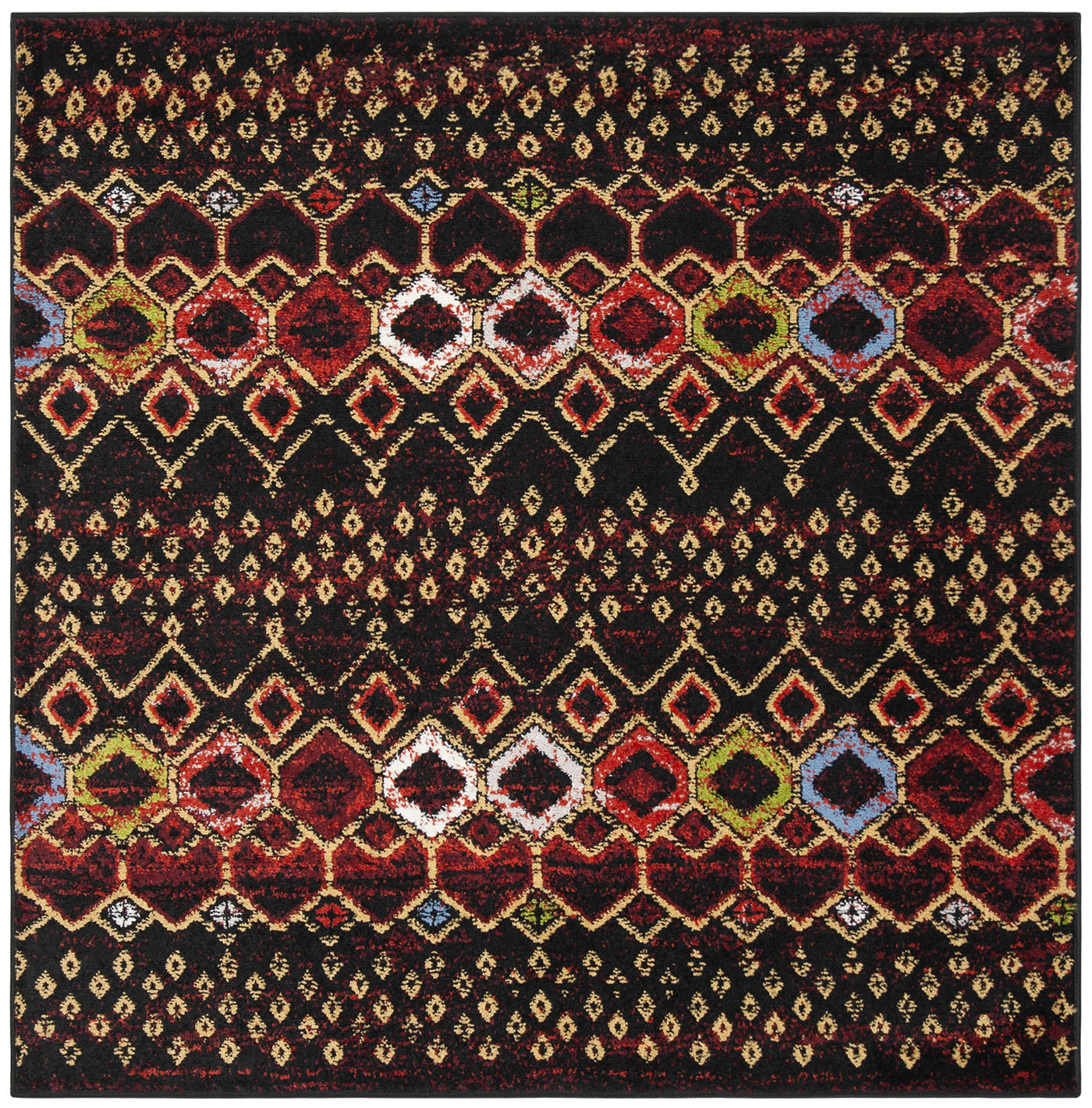 Safavieh Amsterdam Collection Area Rug - 5'1'' Square, Black & Multi, Moroccan Boho Design, Non-Shedding & Easy Care, Ideal For