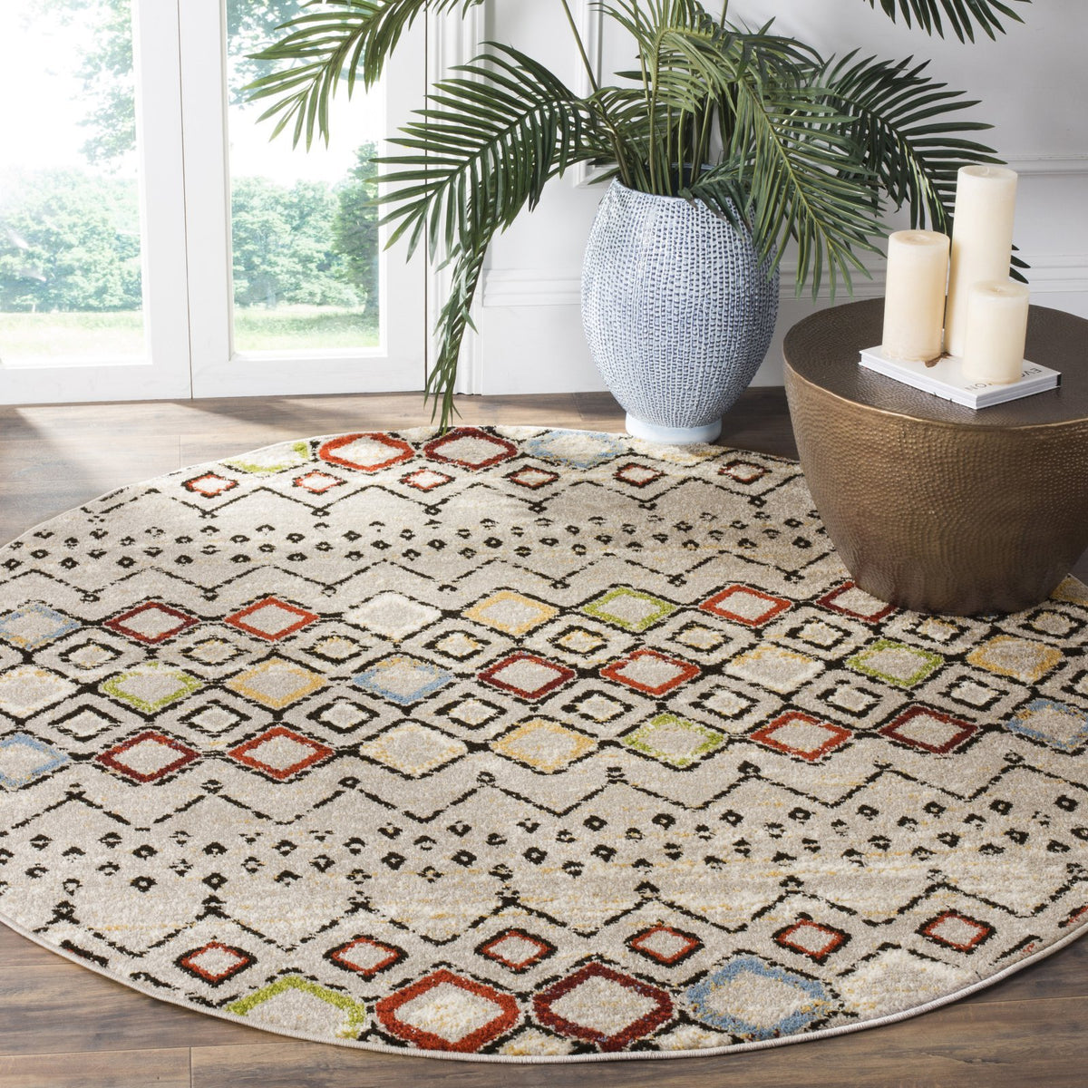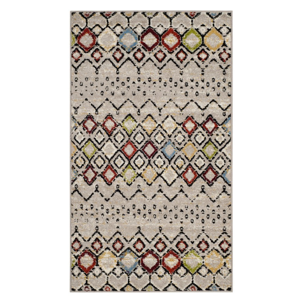 Safavieh Amsterdam Collection Area Rug - 5'1'' X 7'6'', Light Grey & Multi, Moroccan Boho Design, Non-Shedding & Easy Care, Idea