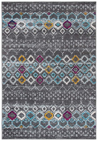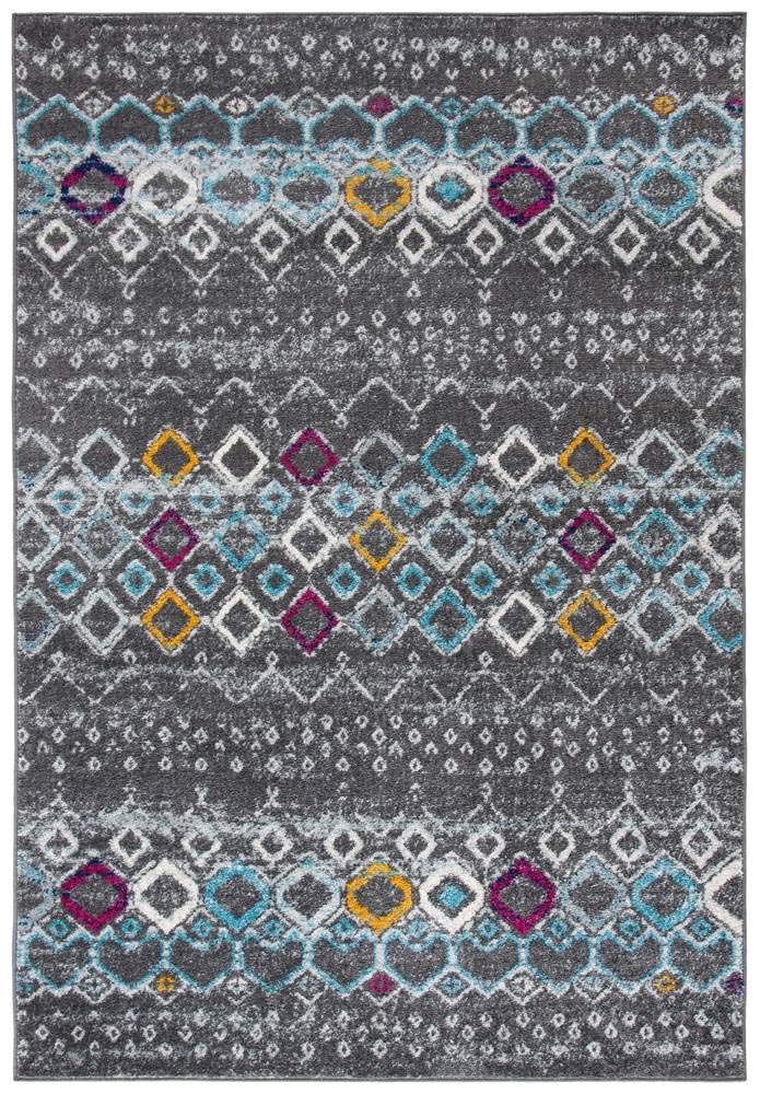 Safavieh Amsterdam Collection Area Rug - 6'7'' X 9'2'', Dark Grey & Ivory, Moroccan Boho Design, Non-Shedding & Easy Care, Ideal