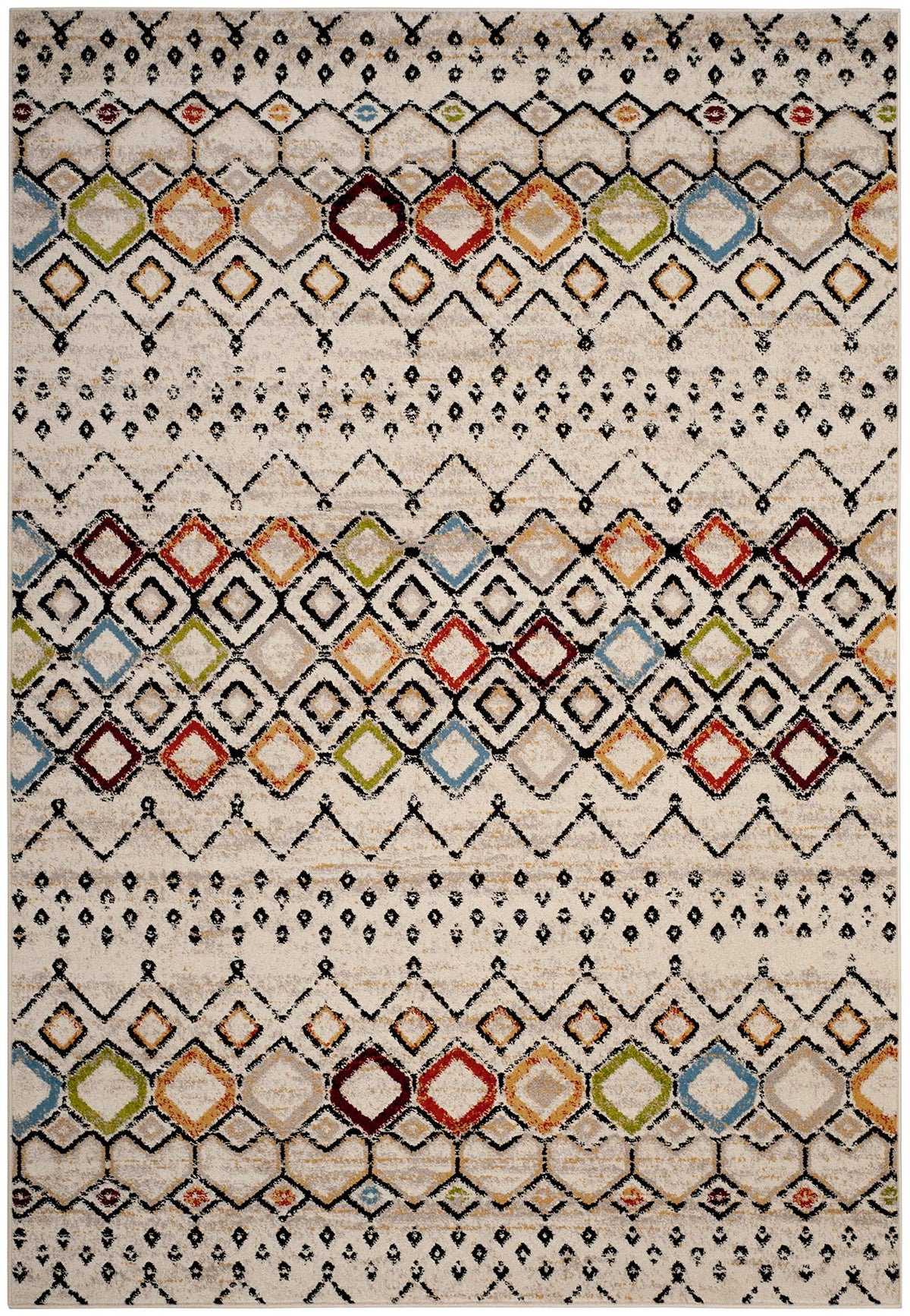 Safavieh Amsterdam Collection Area Rug - 6'7'' X 9'2'', Ivory & Multi, Moroccan Boho Design, Non-Shedding & Easy Care, Ideal For
