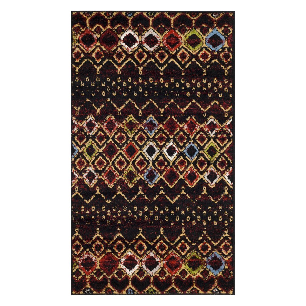 Safavieh Amsterdam Collection Area Rug - 9' X 12', Black & Multi, Moroccan Boho Design, Non-Shedding & Easy Care, Ideal For High