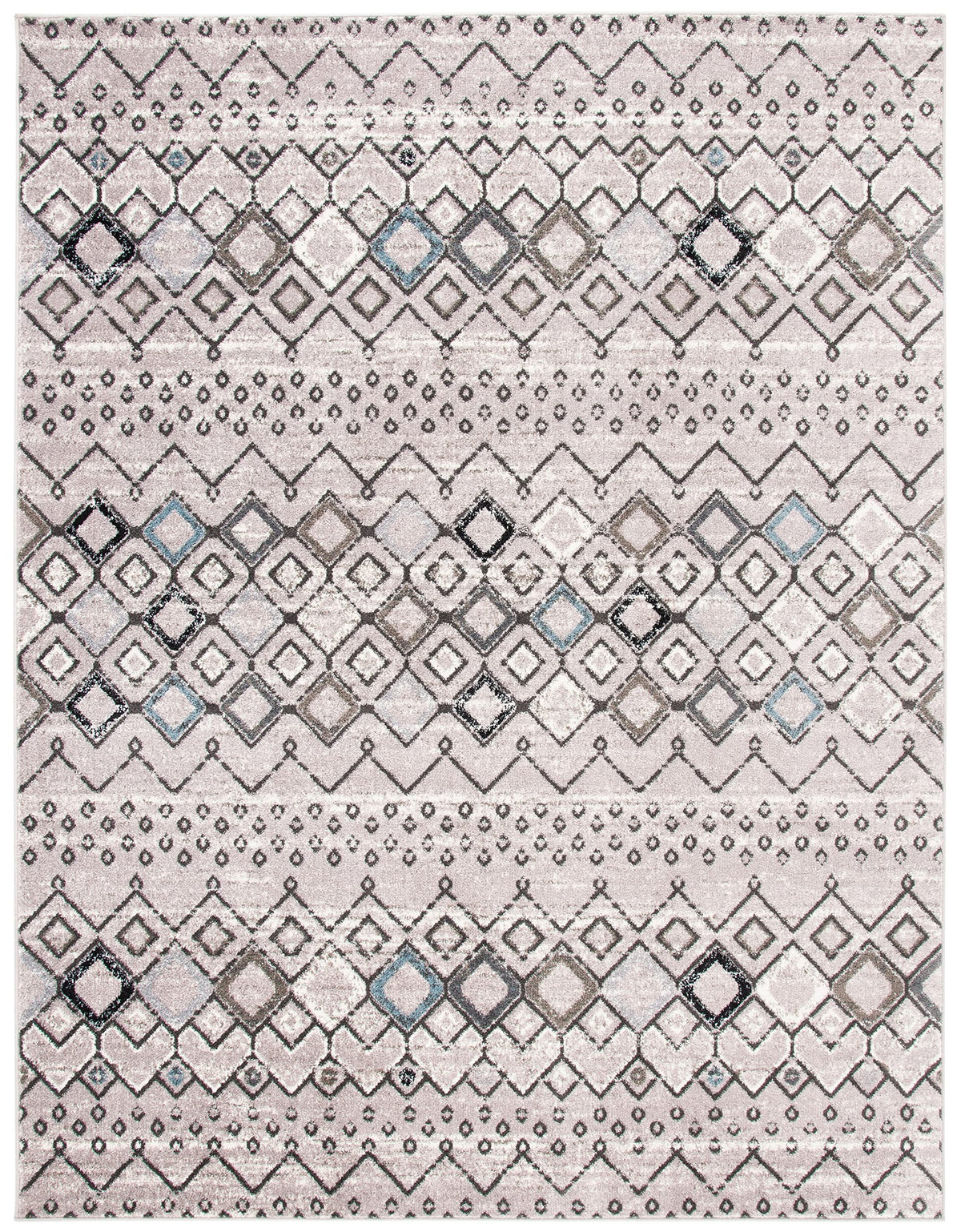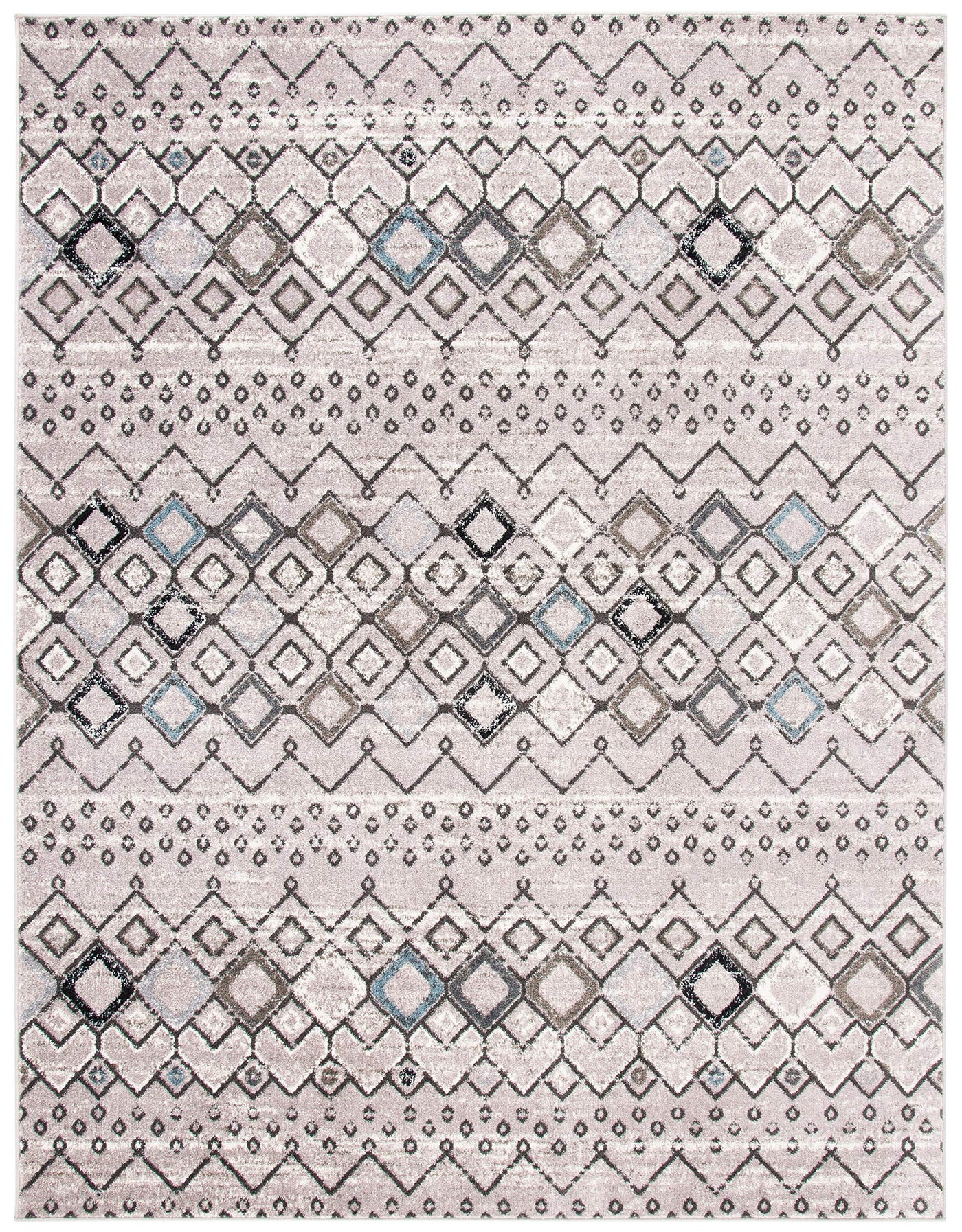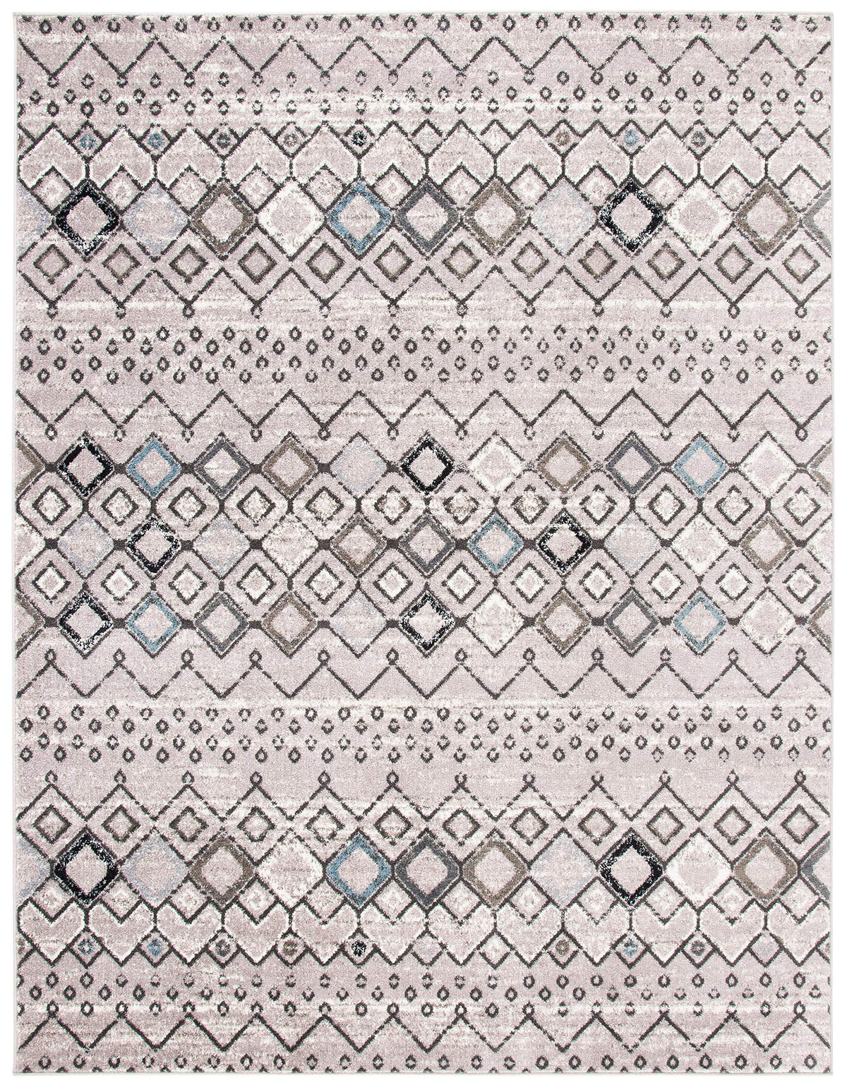 Safavieh Amsterdam Collection Area Rug - 9' X 12', Light Grey & Brown, Moroccan Boho Design, Non-Shedding & Easy Care, Ideal For
