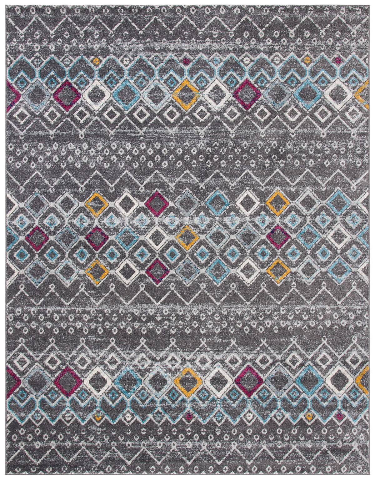 Safavieh Amsterdam Collection X-Large Area Rug - 11' X 15', Dark Grey & Ivory, Moroccan Boho Design, Non-Shedding & Easy Care, I
