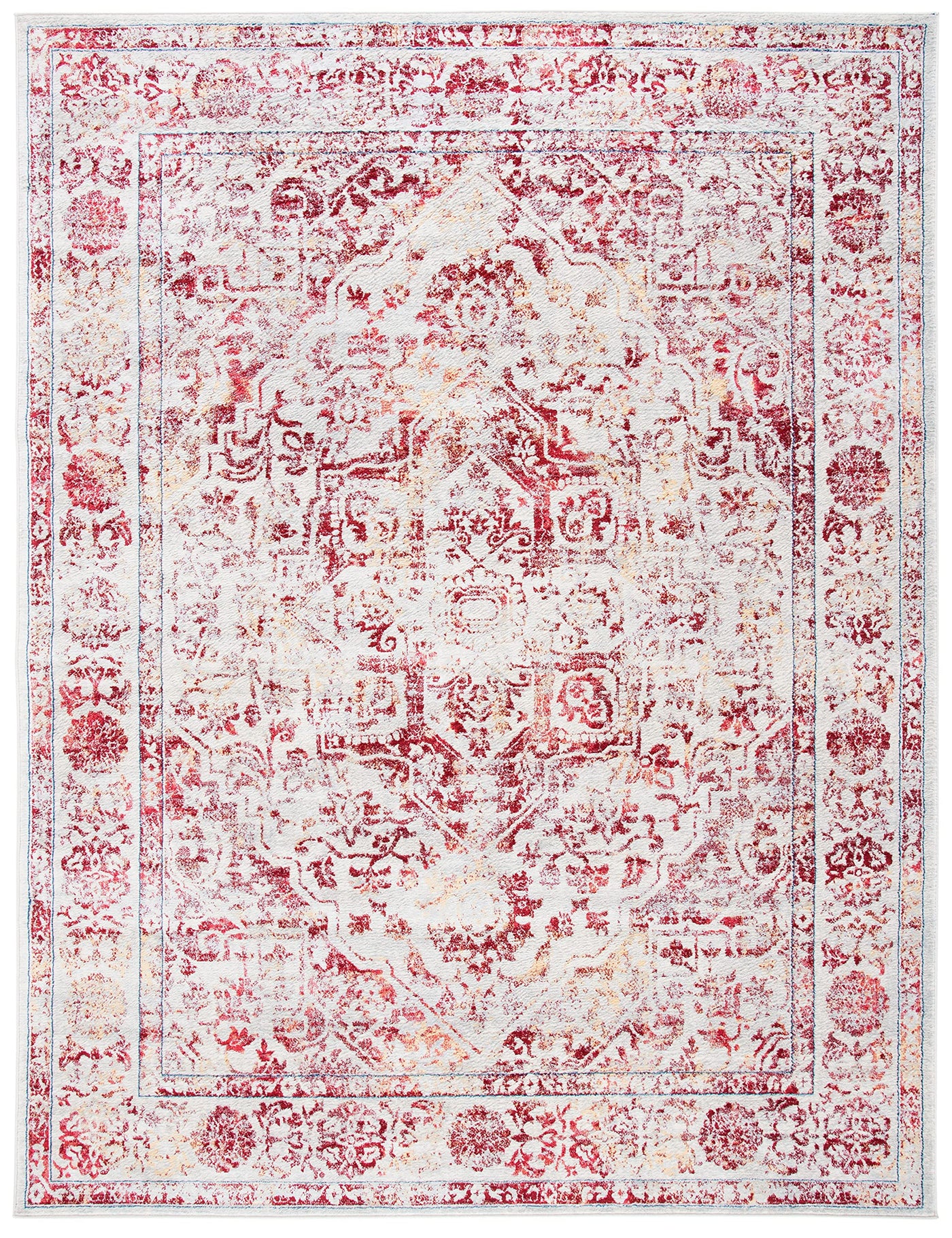 Safavieh Brentwood Collection Area Rug - 10' X 13', Ivory & Red, Medallion Distressed Design, Non-Shedding & Easy Care, Ideal Fo