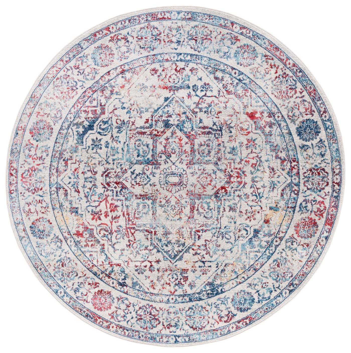 Safavieh Brentwood Collection Area Rug - 3' Round, Ivory & Blue, Medallion Distressed Design, Non-Shedding & Easy Care, Ideal Fo