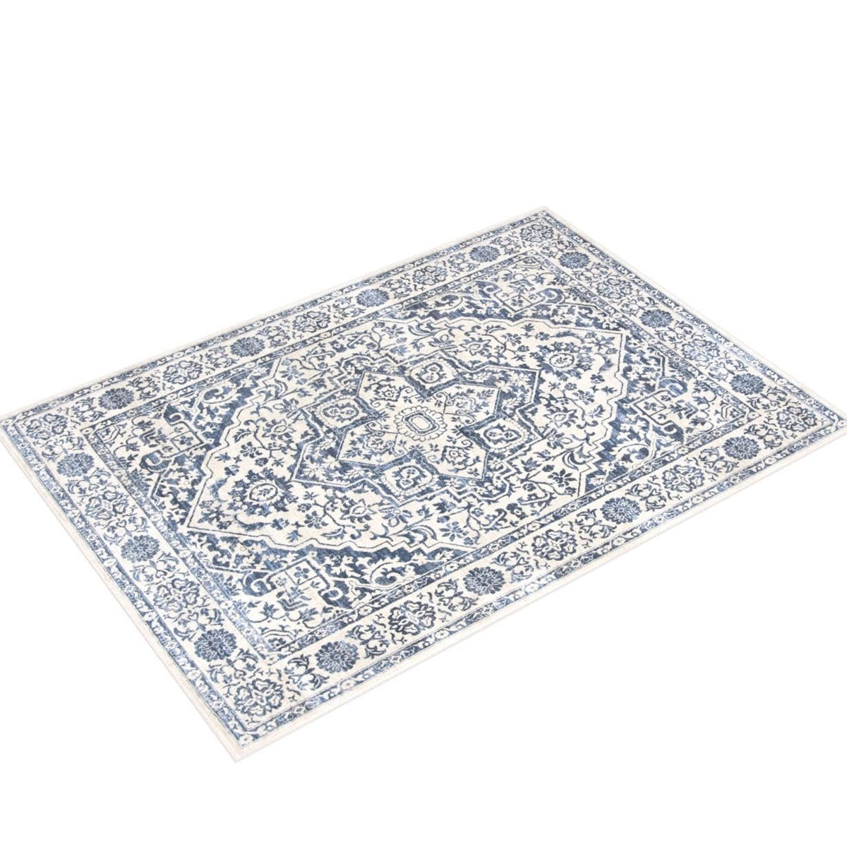 Q: What design style does the Brentwood Collection Rug feature?A: The rug features a trendy distressed medallion design, beautifully enhancing any room with its heirloom-inspired traditional aesthetic.