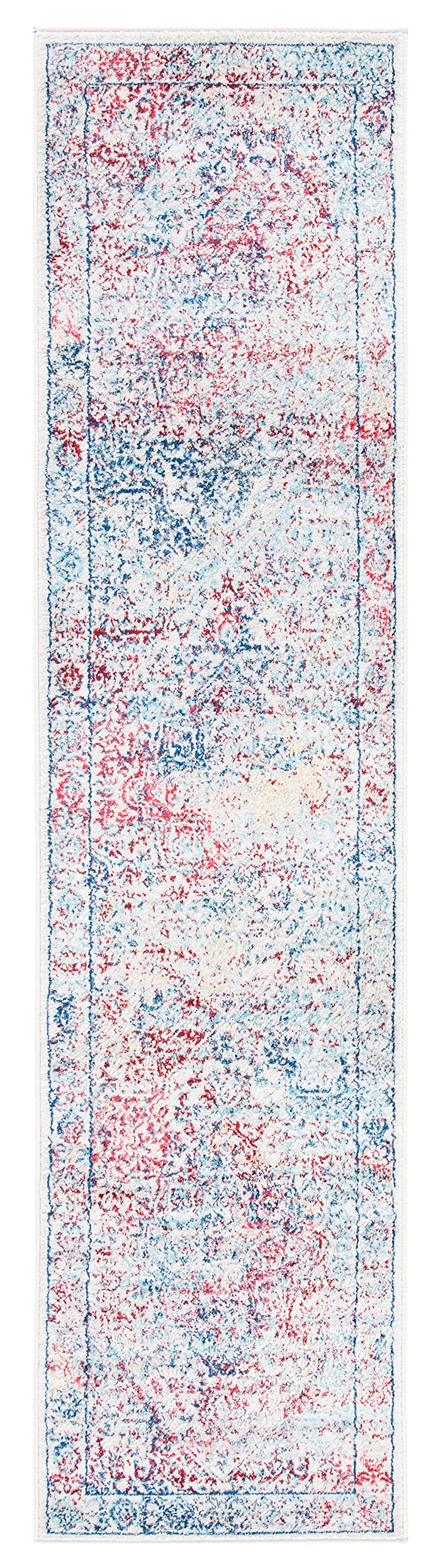 Safavieh Brentwood Collection Runner Rug - 2' X 10', Ivory & Blue, Medallion Distressed Design, Non-Shedding & Easy Care, Ideal