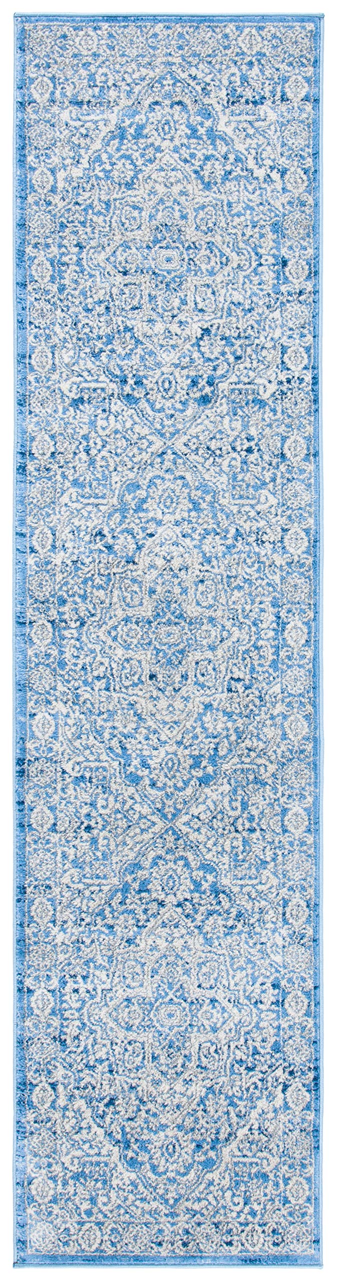 Safavieh Brentwood Collection Runner Rug - 2' X 12', Ivory & Navy, Medallion Distressed Design, Non-Shedding & Easy Care, Ideal