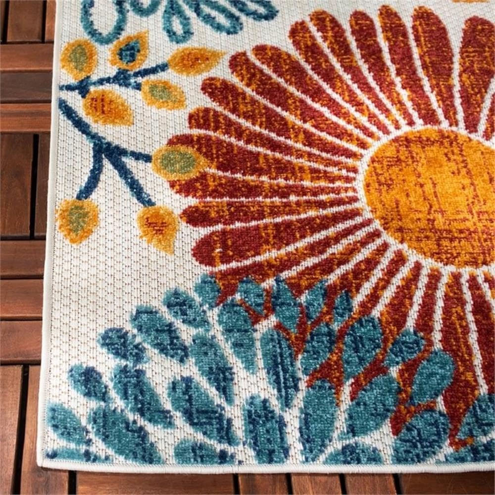 Cabana Indoor-Outdoor area rugs bring a splash of color and pattern to any living space. Their sturdy polypropylene material makes them ideal for rain or shine. With charming floral patterns, These rugs work beautifully in the kitchen, sunroom, entryway, family room, patio, or mudroom.